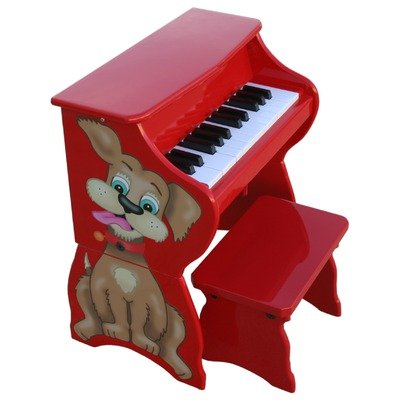 This versatile little piano grows with your child! The main unit, decorated with a whimsical animal's head, is perfect for toddlers because it sits safely and squarely on the floor within easy reach of little hands. Later on, the sides with the animal's body can be attached, conveniently raising the piano to a comfortable upright height for an older child seated at the (included) bench.